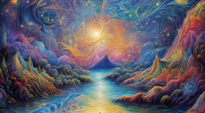 Mi experiencia al soñar es a veces como una canción instrumental, vibrando en escalas, sino de amor, por lo menos en algo mejor. Soñar, songuiar, tomar un torrente, un hilo guía, para viajar entre frecuencias que resuenan con el ser y la memoria a la que se ha enlazado. Psicodélico, fibras que se iluminan con tan exquisitas melodías, como el agua del río encuentra su camino al mar. En estos mis sueños, el fractal, cuando es llamado, encuentra su camino a sí mismo, al Ser, bailando, danzando, avanzando, deteniéndose por momentos, girando, retrocediendo, un baile, una música, mil sueños.